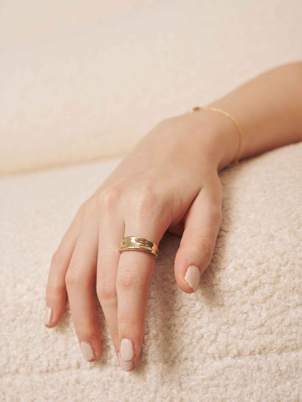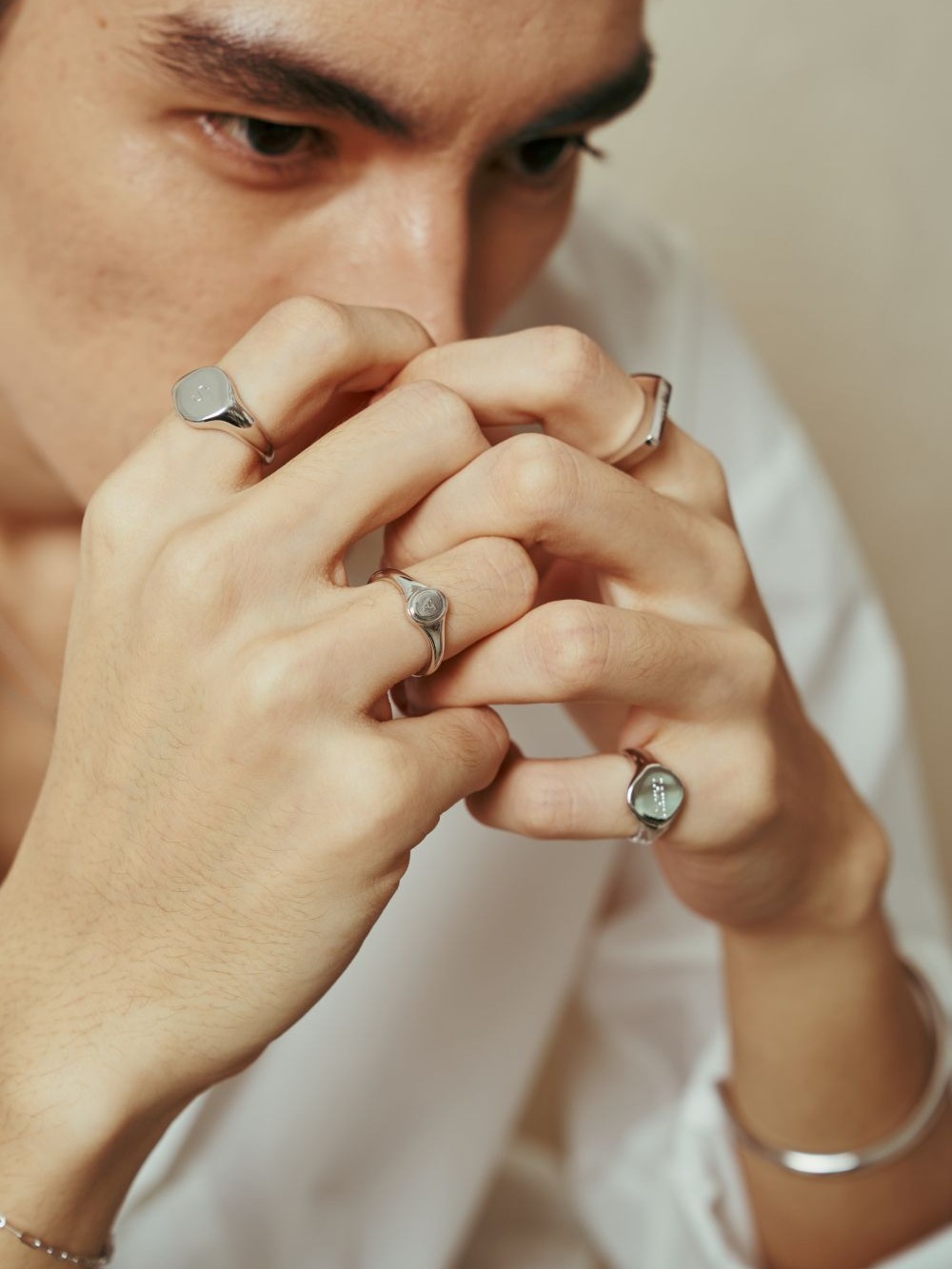 Right: Flat Signet Ring, Savlatore Ring worn as a pinky ring