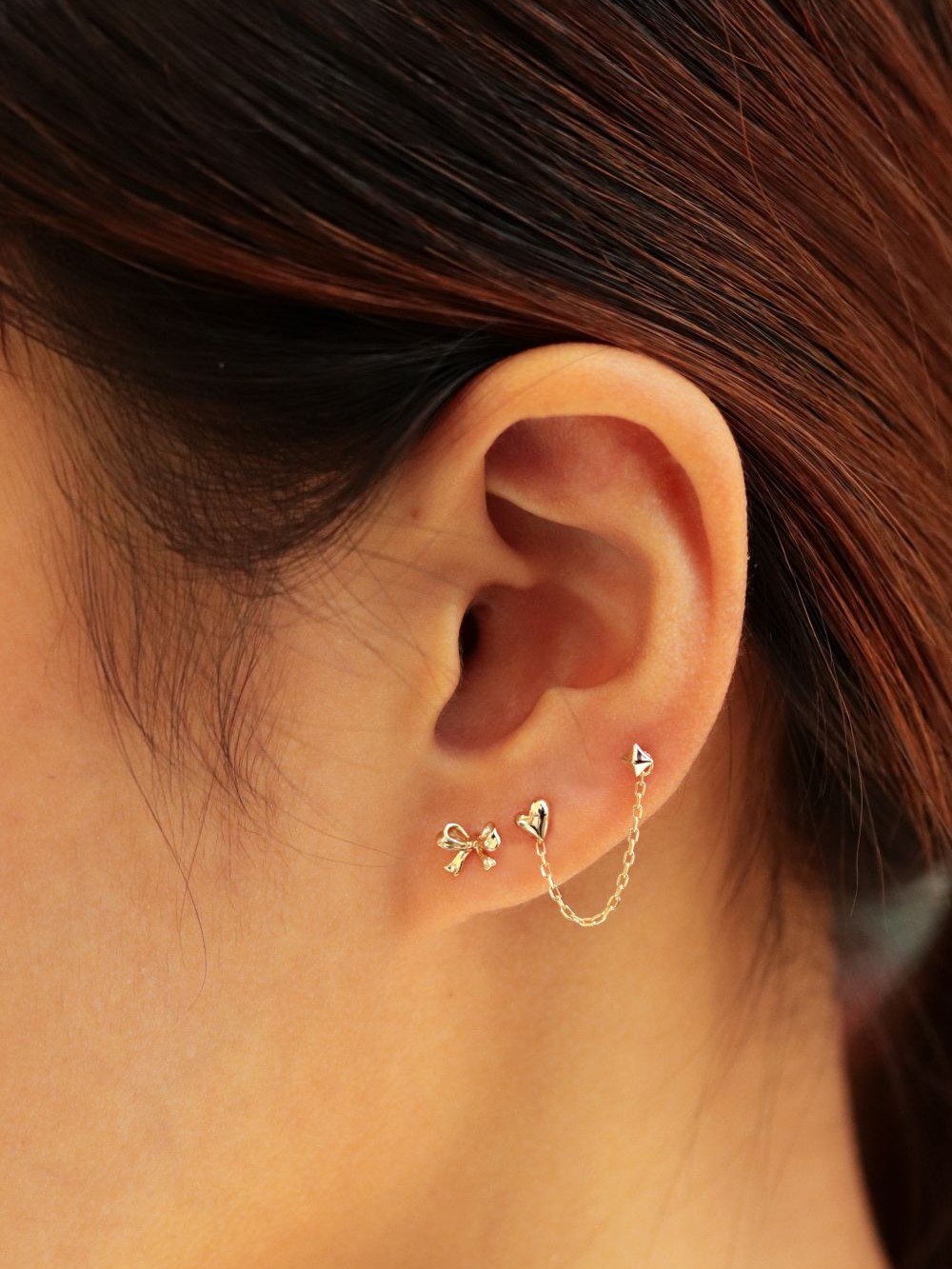 Puffy Heart Ear Studs and Rockstar Ear Studs, connected by a 14k Daydreamer Ear Chain