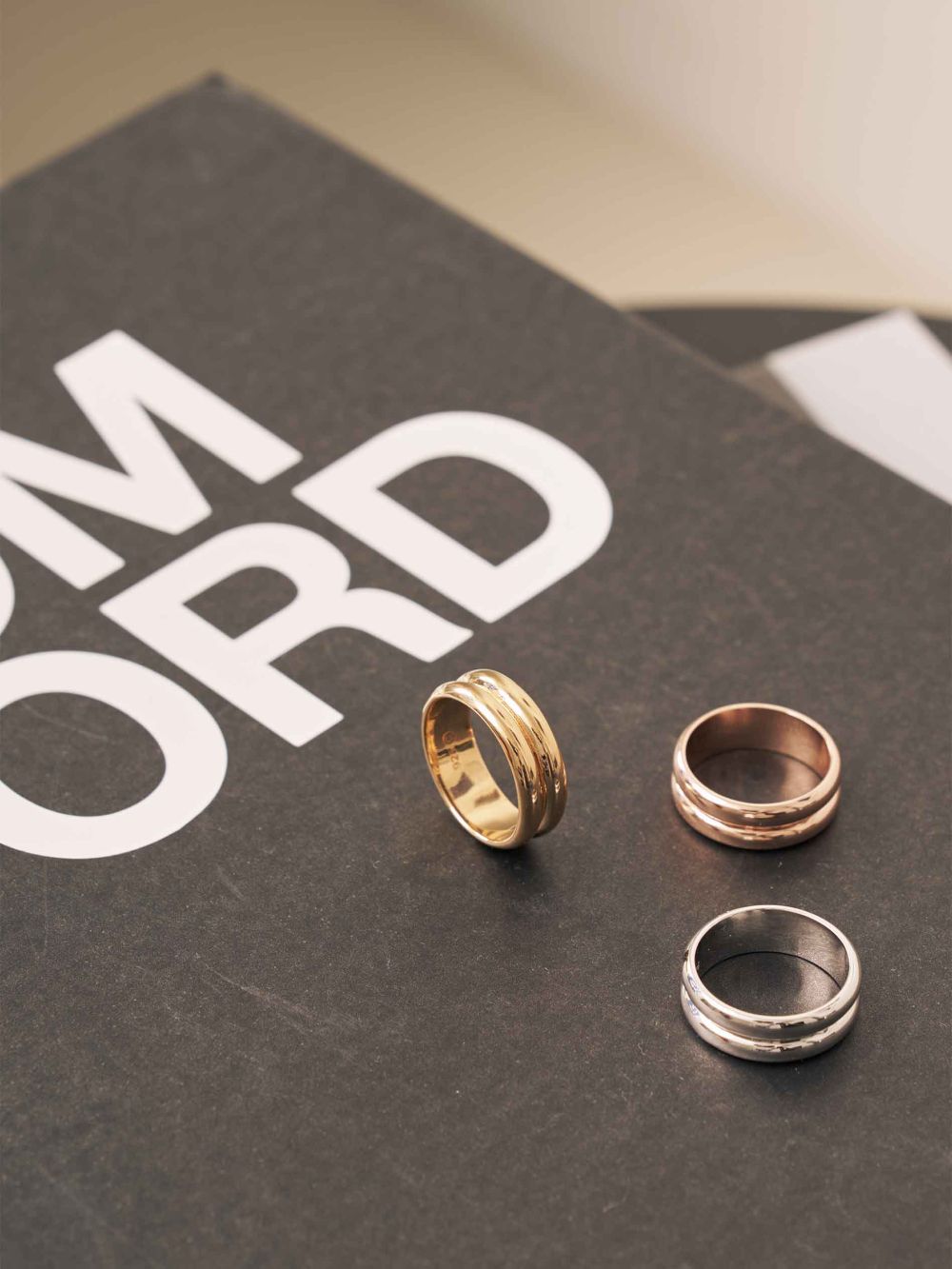 Nova Ring, Dune Ring, Pulse Ring (stacked together),