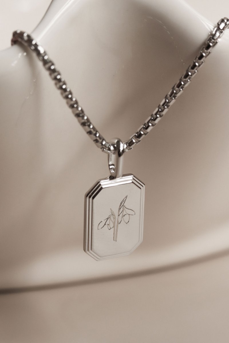 The Armory Necklace is all about strong style with a timeless twist. Its bold octagonal shape and clean lines make it stand out, while the broad center is the perfect spot for a personal engraving.
