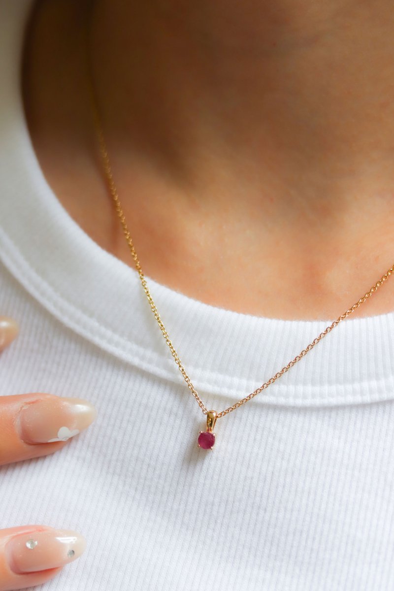 July burns bright in ruby. Vivid, passionate, and impossible to ignore — a true statement of confidence. Wear it front and centre, or pair with gold layers for a bold, elevated stack.