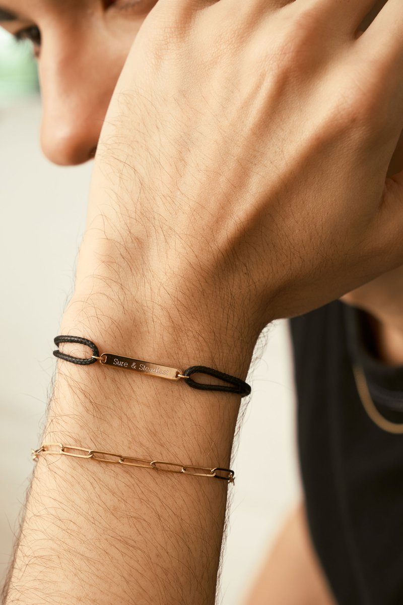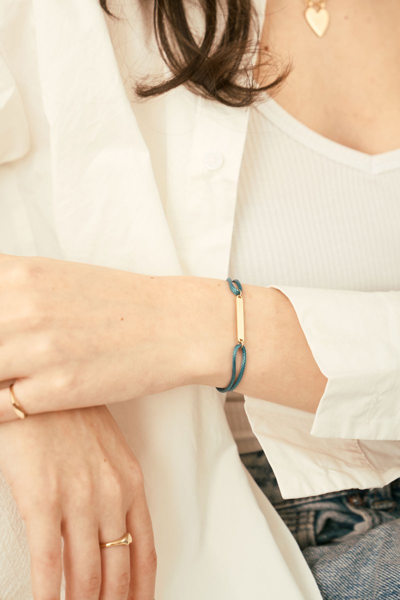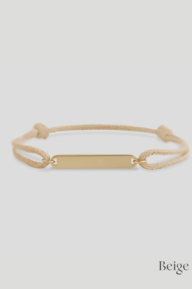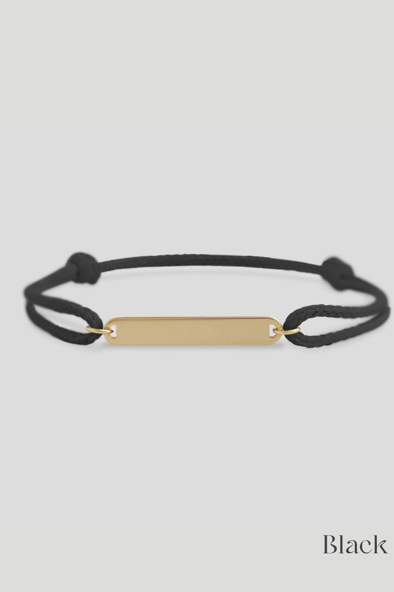 Sleek and modern, this adjustable cord bracelet features a minimalist rectangle charm that can be personalized with initials, dates, or a short word. Its clean lines make it perfect for anyone, while the sliding cord ensures a comfortable fit for every wrist. A versatile accessory that’s thoughtful, stylish, and effortlessly personal.