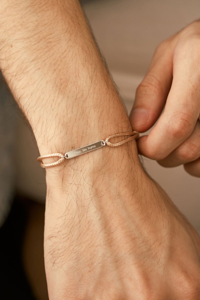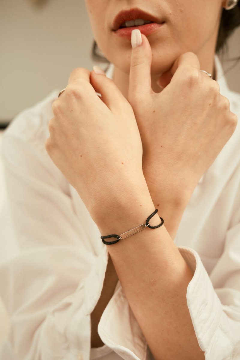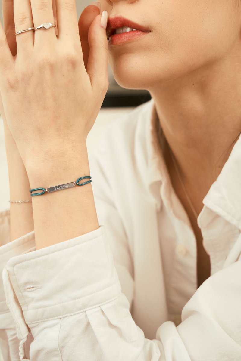 Sleek and modern, this adjustable cord bracelet features a minimalist rectangle charm that can be personalized with initials, dates, or a short word. Its clean lines make it perfect for anyone, while the sliding cord ensures a comfortable fit for every wrist. A versatile accessory that’s thoughtful, stylish, and effortlessly personal.