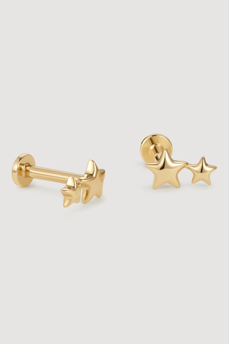 For the ones who reach for the stars. Two golden stars, aligned and radiant in 14k gold, bring a touch of celestial charm and subtle sparkle to everyday wear.