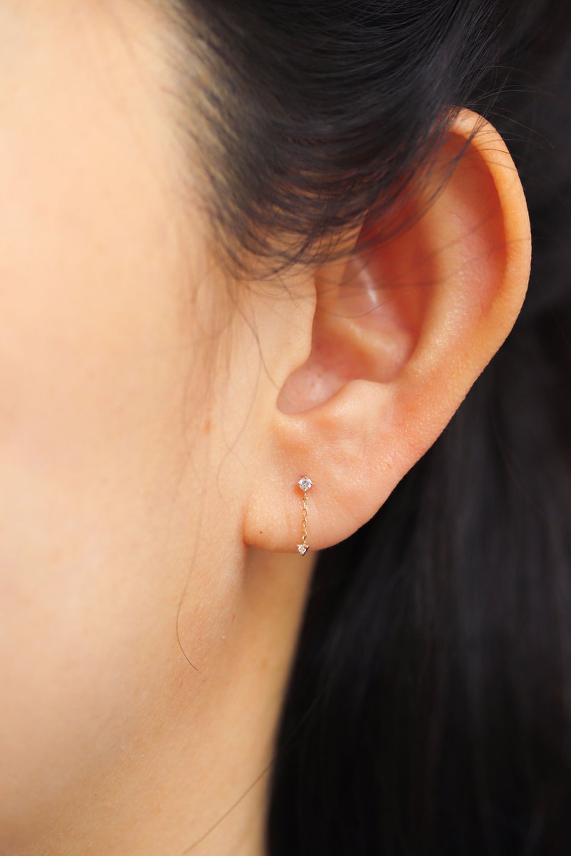 The Éclat Labret is subtle brilliance, doubled. A tiny diamond stud leads the way, followed by a delicate drop that holds another small diamond — creating a soft, glimmering line of light.