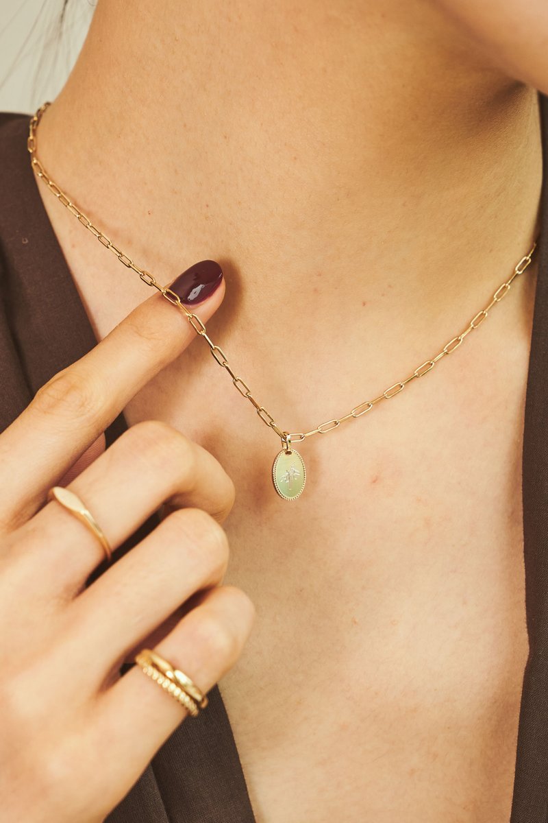 Polished, refined, and endlessly versatile. Its smooth oval surface offers the perfect space for an engraving — initials, a date, or a quiet reminder. A piece that holds meaning in every shine, made to be worn every day, in your own way.