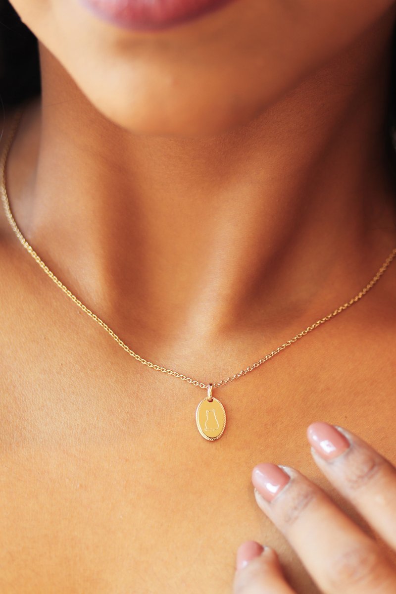 Lexi Necklace in Champagne Gold - Cat Illustration
