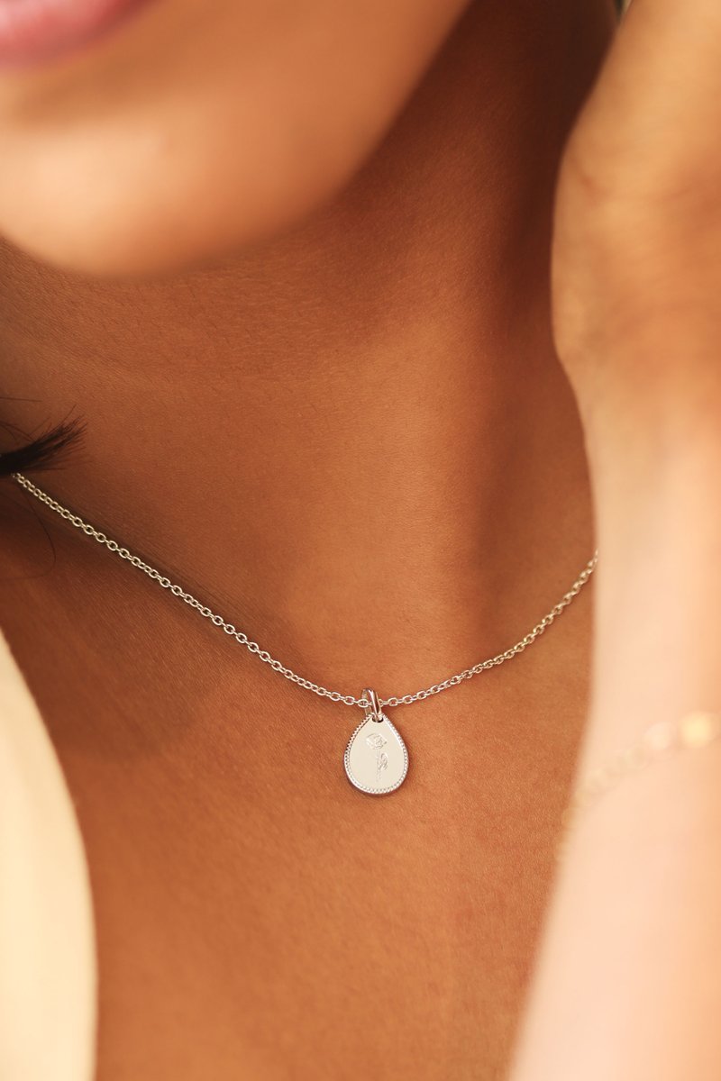 Where meaning meets form. The Lily necklace holds quiet emotion in its curve — a reminder of joy, love, or strength. Engrave what’s close to your heart and let it rest against yours.