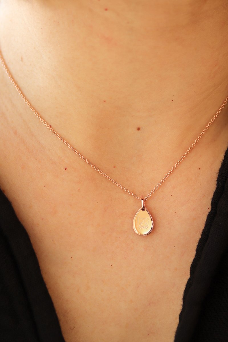 Where meaning meets form. The Lily pendant holds quiet emotion in its curve — a reminder of joy, love, or strength. Engrave what’s close to your heart and let it rest against yours.