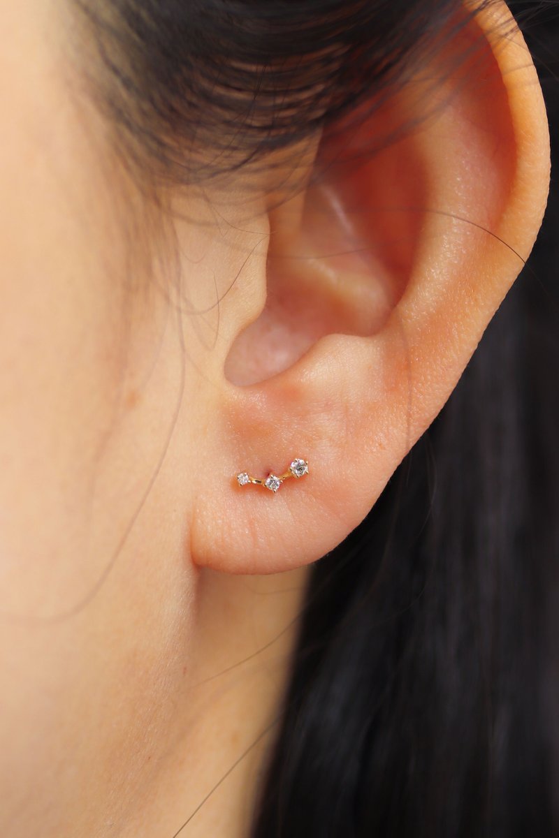 Meet the Lyra Labret — a tiny constellation for your ear. Three diamonds aligned from bottom to top create a sleek, luminous trail that adds a subtle celestial sparkle to any stack.