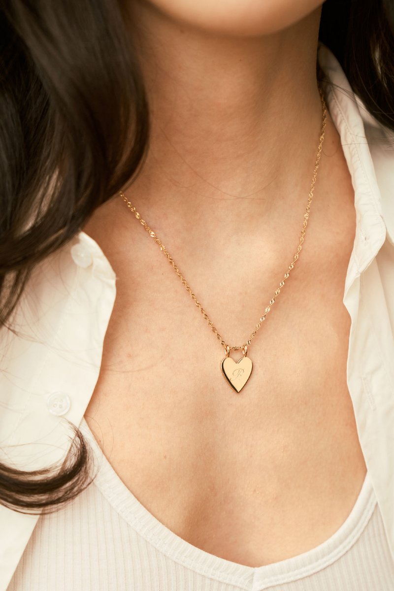 A bold heart charm designed to be worn with intention. It sits perfectly balanced and stable on the neck. Made to hold meaning and be worn every day. Make it extra special by engraving something close to your heart.