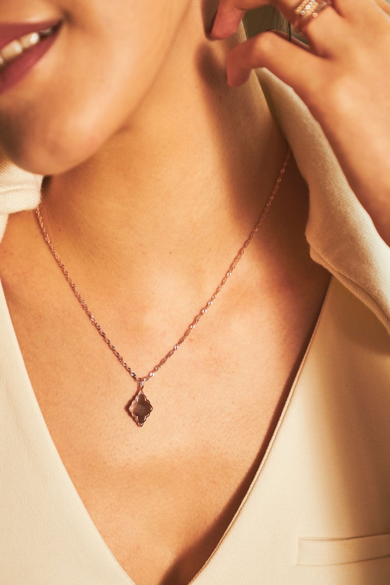 A modern heirloom in the making. With its intricate, antique-inspired carvings and geometric diamond silhouette, this pendant captures timeless beauty in every detail. Engrave it to make it truly yours — a piece that feels like it’s always had a story to tell.