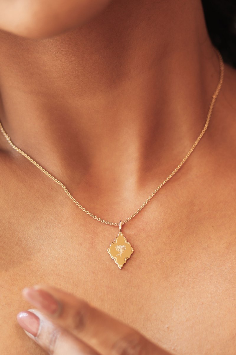A modern heirloom in the making. With its intricate, antique-inspired carvings and geometric diamond silhouette, this pendant captures timeless beauty in every detail. Engrave it to make it truly yours — a piece that feels like it’s always had a story to tell.