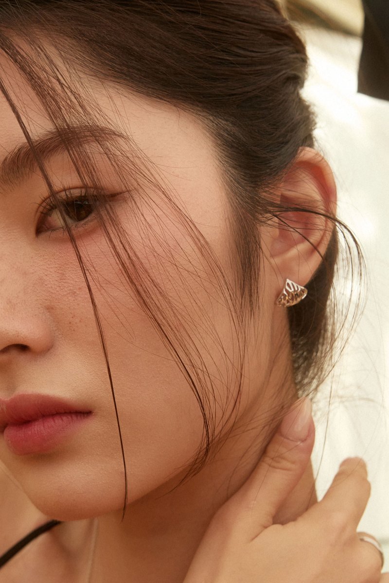 Just as light becomes the soul of the canopy, it threads its way through the jewelry, illuminating airy silhouettes that are both grounded and graceful. A tribute to light as architecture, light as texture — and light as adornment.