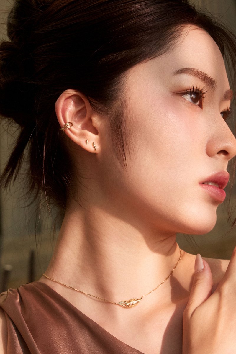 Just as light becomes the soul of the canopy, it threads its way through the jewelry, illuminating airy silhouettes that are both grounded and graceful. A tribute to light as architecture, light as texture — and light as adornment.