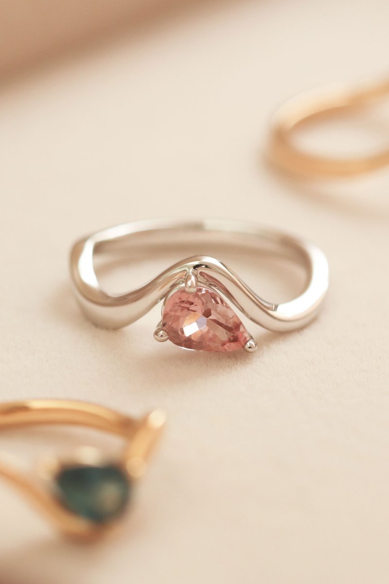 Flowing like a gentle tide, Cadence dances with light. The wavy band cradles a sparkling tear-drop stone, a striking statement of harmony, movement, and radiant confidence that lingers in every glance. Not for the faint hearted.
