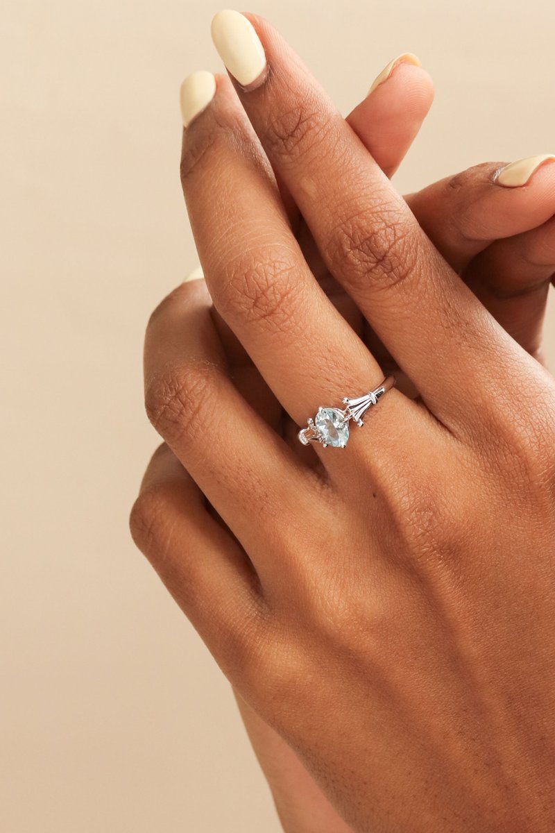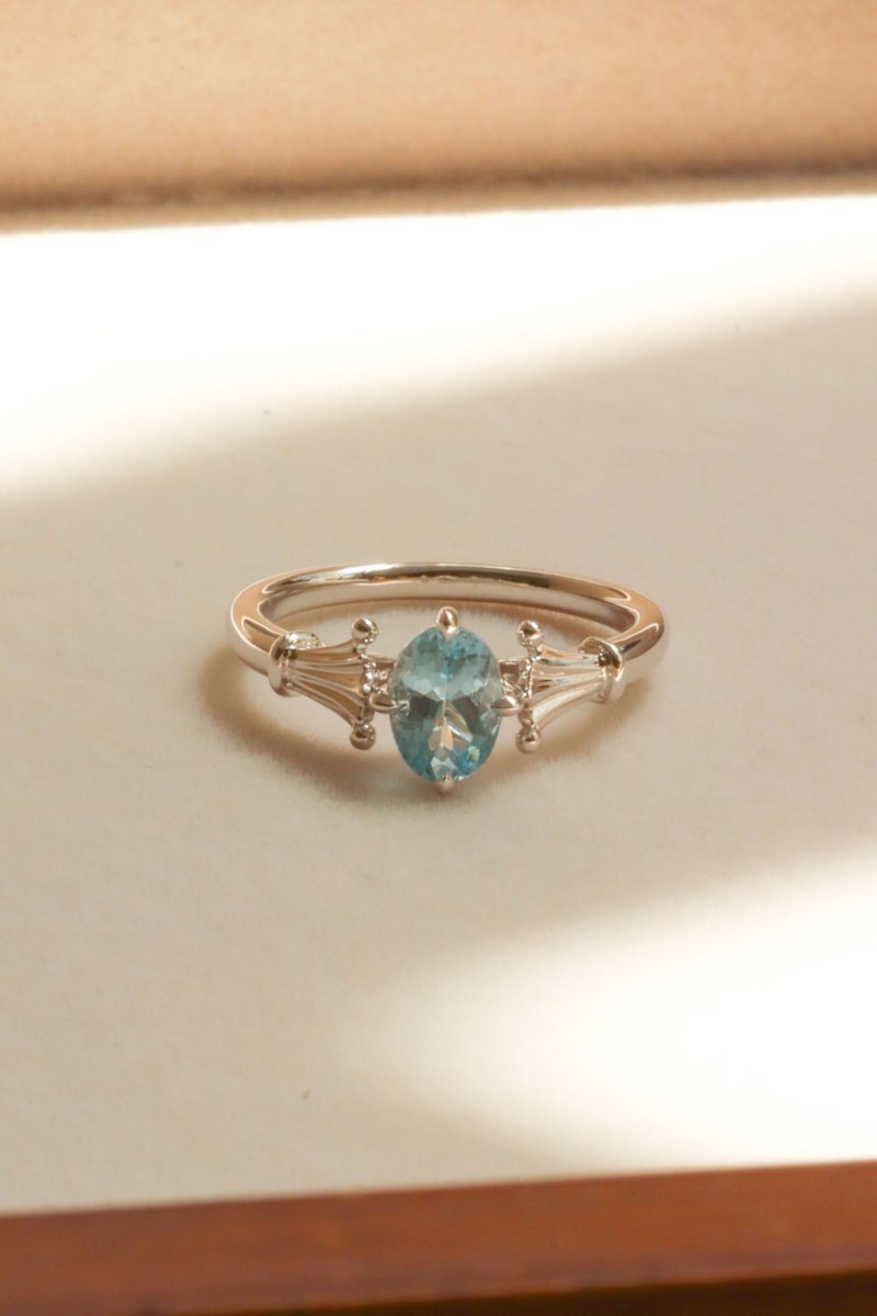One-of-a-kind The Cathedral Ring - Aquamarine in 18k Solid White Gold 01