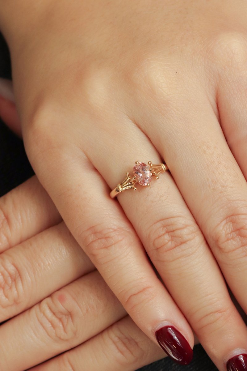 One-of-a-kind The Cathedral Ring - Morganite in 18k Solid Gold 05