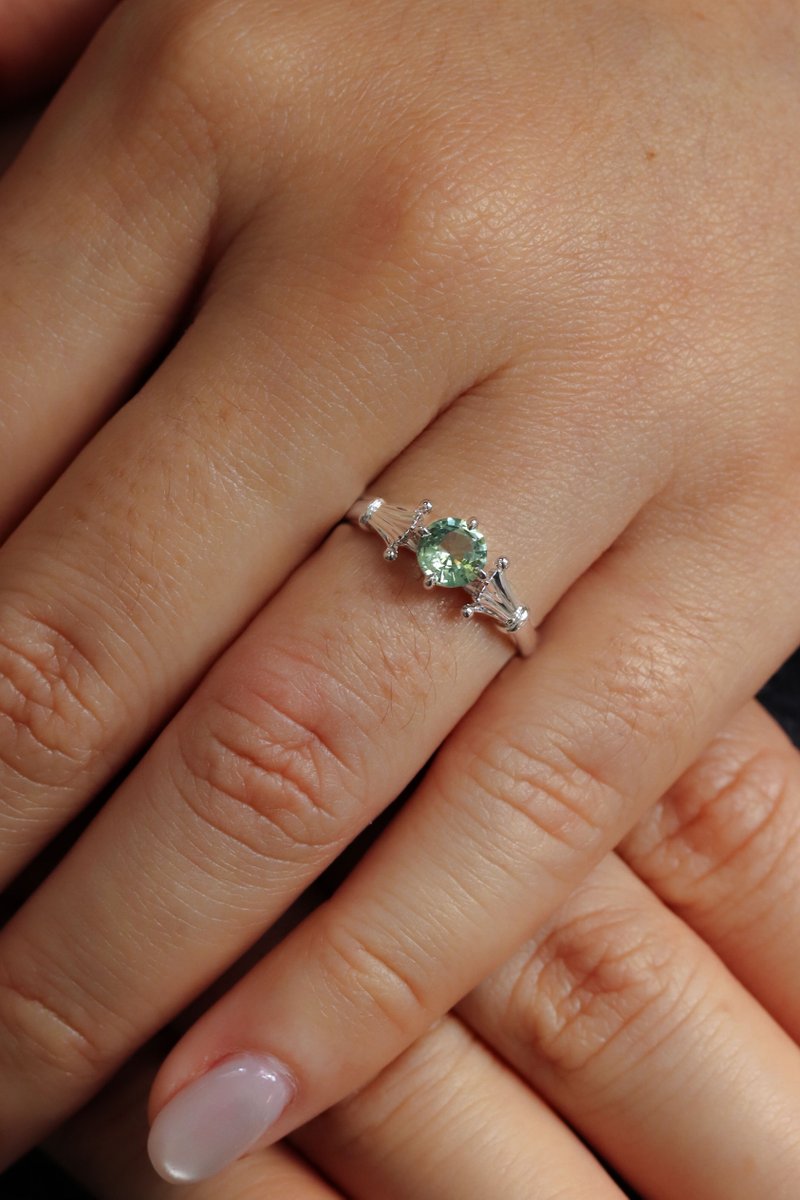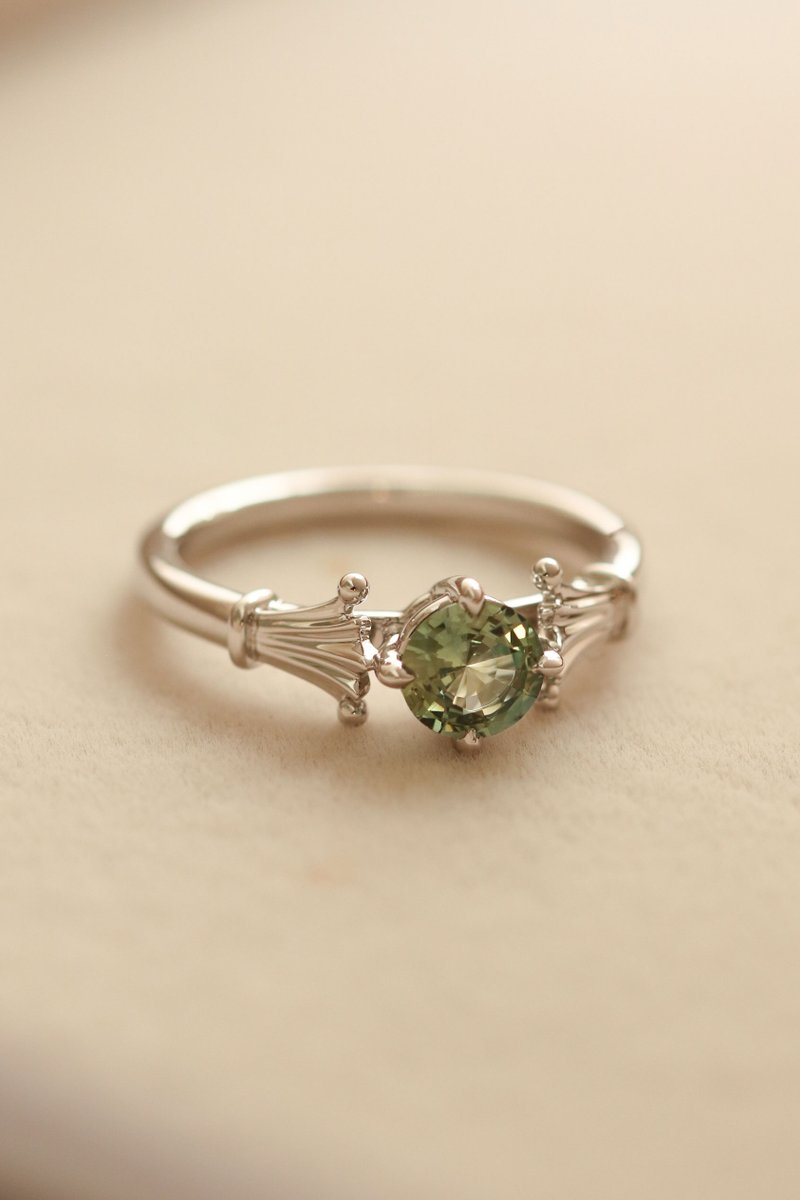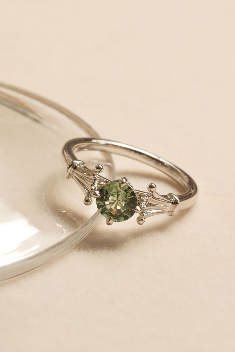 One-of-a-kind The Cathedral Ring - Round Parti Green Sapphire in 18k Solid White Gold 02