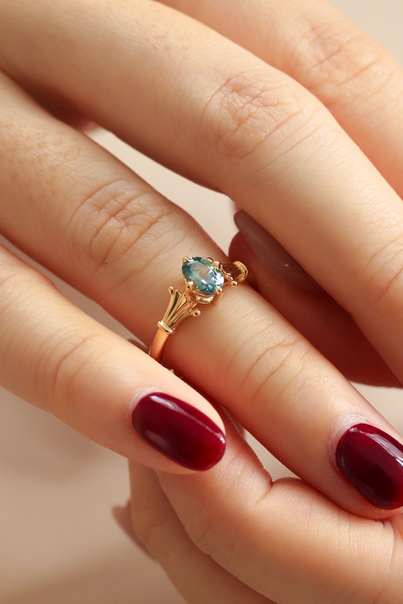 One-of-a-kind The Cathedral Ring - Teal Sapphire in 18k Solid Gold 06