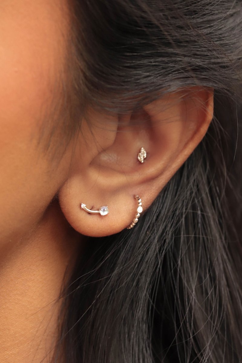 Starfield Ear Studs - Diamond & Moonstone in 14k White Gold
