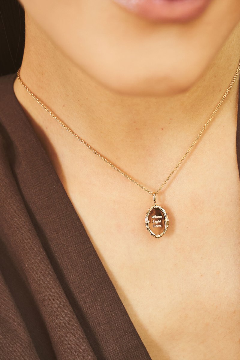 Like something out of a storybook, this mirror-shaped pendant captures quiet elegance and a touch of fantasy. Its polished surface and intricate edges feel both old and new — perfect for engraving your own truth within the frame.