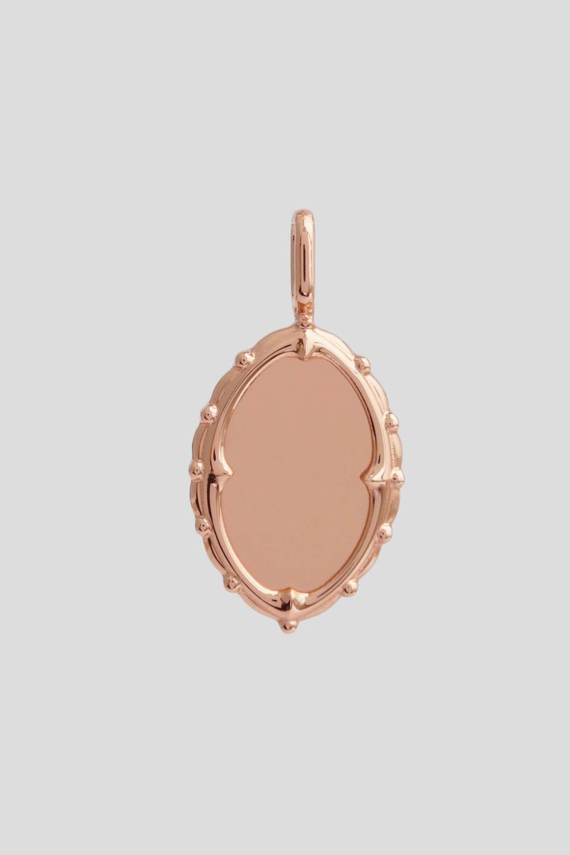 Like something out of a storybook, this mirror-shaped pendant captures quiet elegance and a touch of fantasy. Its polished surface and intricate edges feel both old and new — perfect for engraving your own truth within the frame..