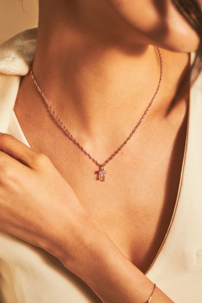 A delicate bow that ties it all together. The Ribbon Necklace adds a flirty finishing touch to your stack — dainty, polished, and full of personality.