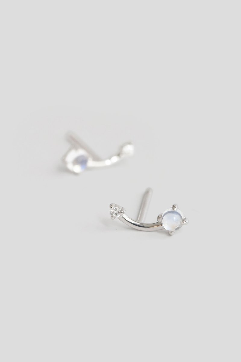 Starfield Ear Studs - Diamond & Moonstone in 14k White Gold