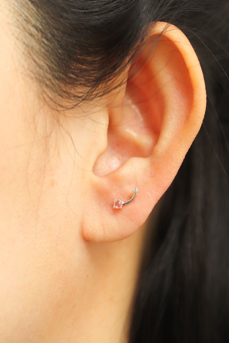 A graceful curve with intention. These earrings feature a sleek, flowing silhouette finished with a soft moonstone at one end and a single diamond at the other. Designed to feel fluid yet defined, they add a quiet sense of movement and contrast to everyday looks.