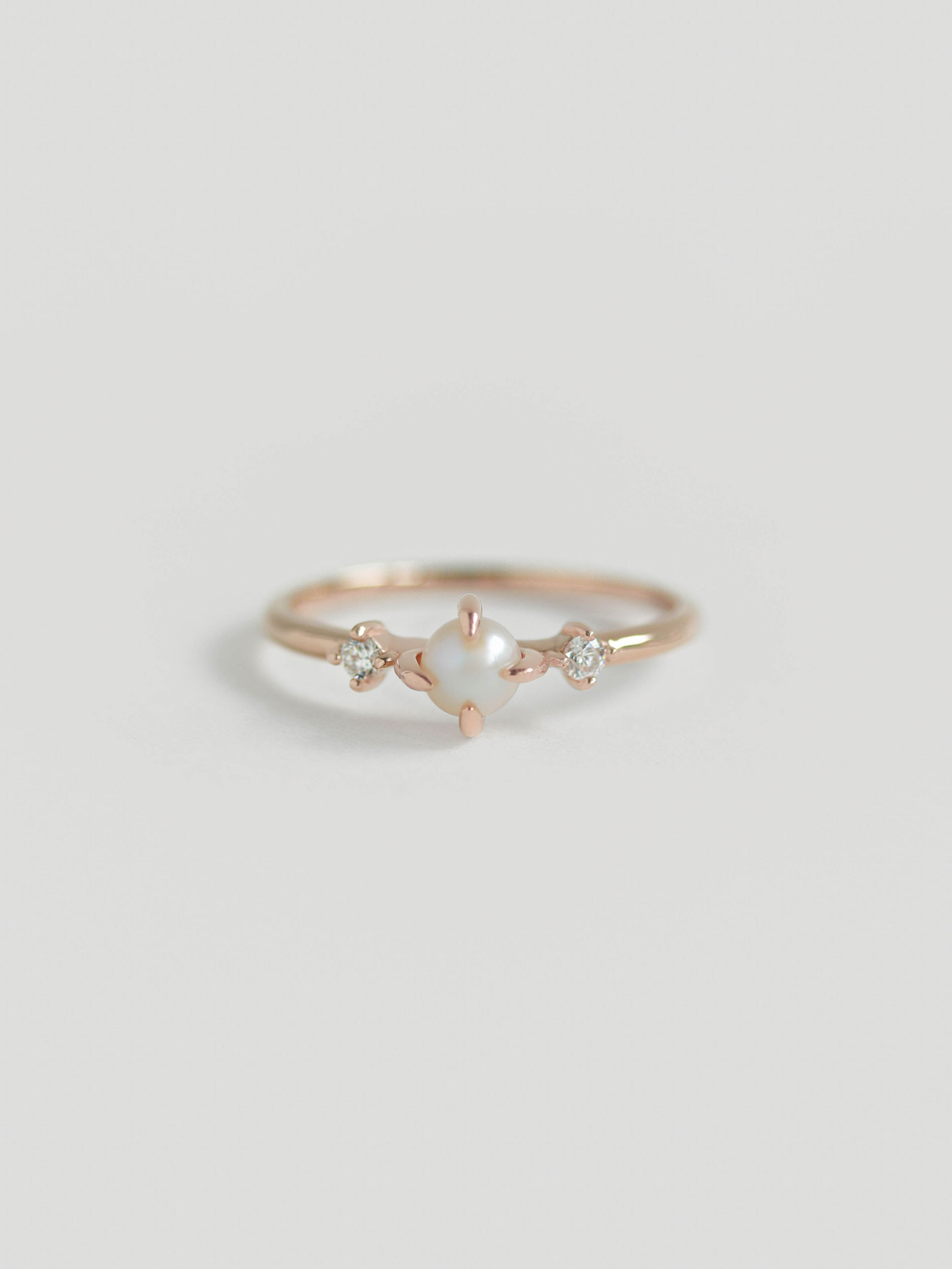 Ostrea Ring - White Round Pearl & Diamond in 14k Rose Gold