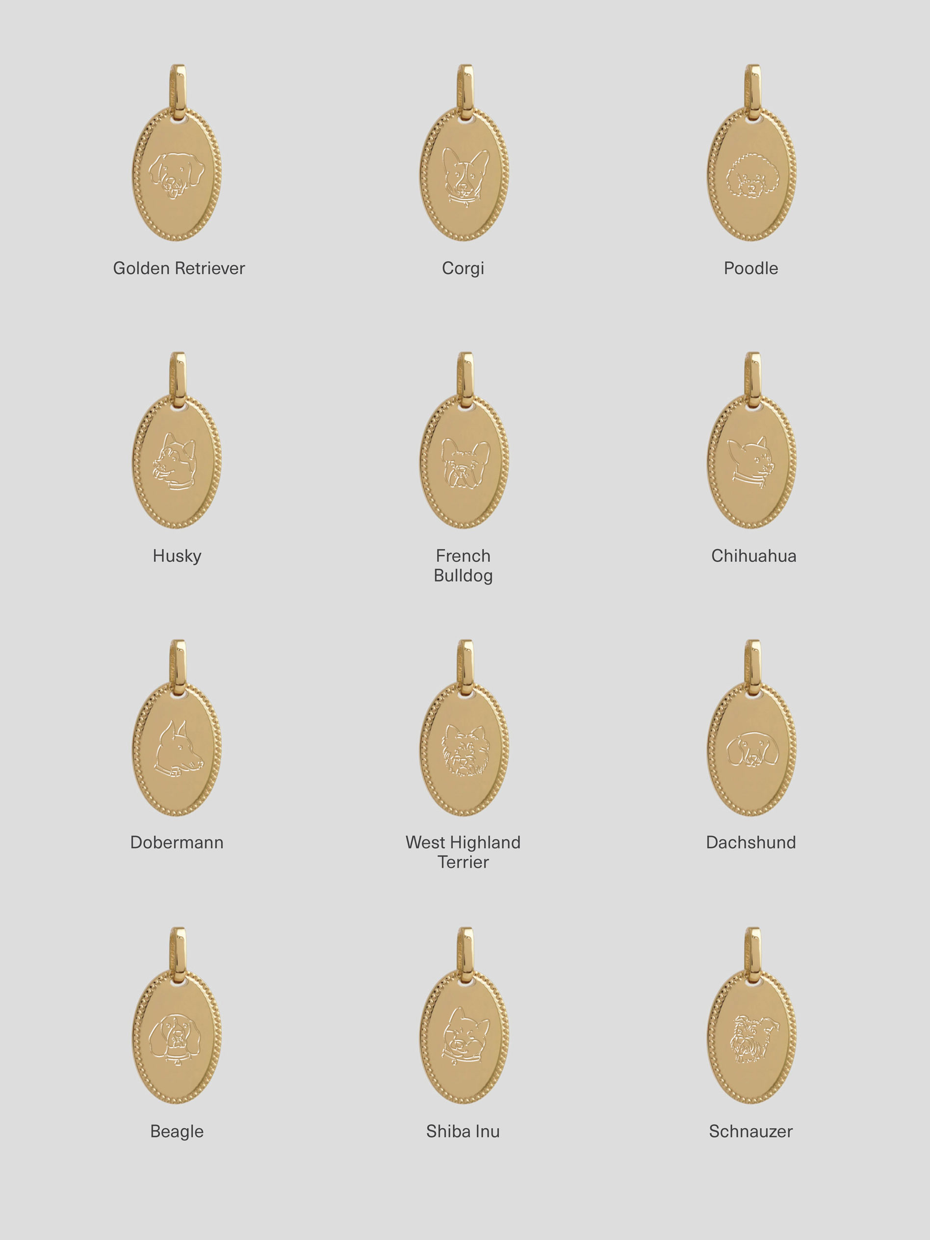 Lexi Pendant in Champagne Gold - Dog Illustration