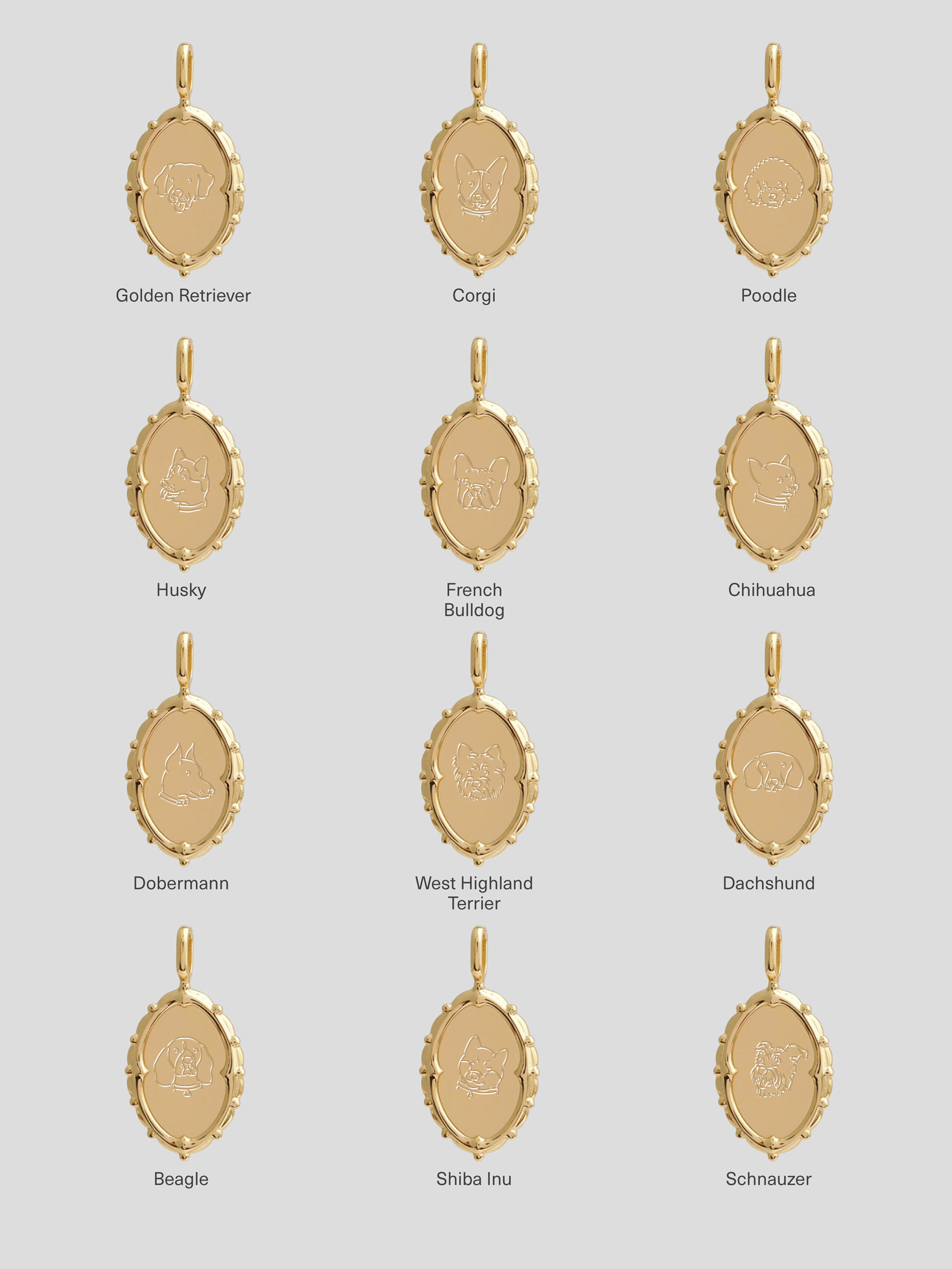 Petrova Pendant in Champagne Gold - Dog Illustration